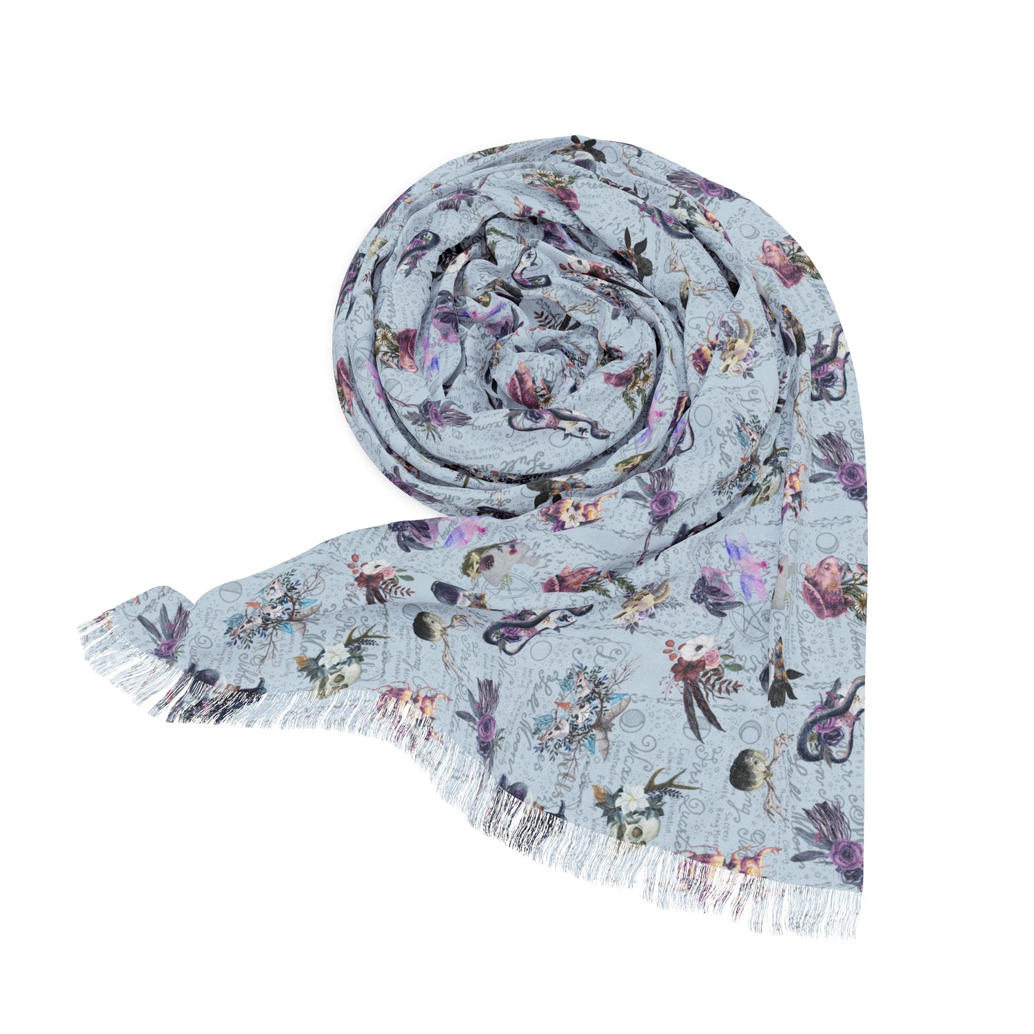 The Alchemy Charm Scarf is perfect for those with a witchy and mystical style. This lightweight scarf is made of 100% polyester, making it durable and quick-drying. The vibrant colors and semi-translucent print give off a mystical vibe, great for accessorizing any outfit. With its soft material and seamless construction, this scarf is a must-have for anyone looking to add a touch of magic to their wardrobe. Perfect for the witchy individuals and those who love mystical fashion. Ideal for Halloween, cosplay, and everyday wear.