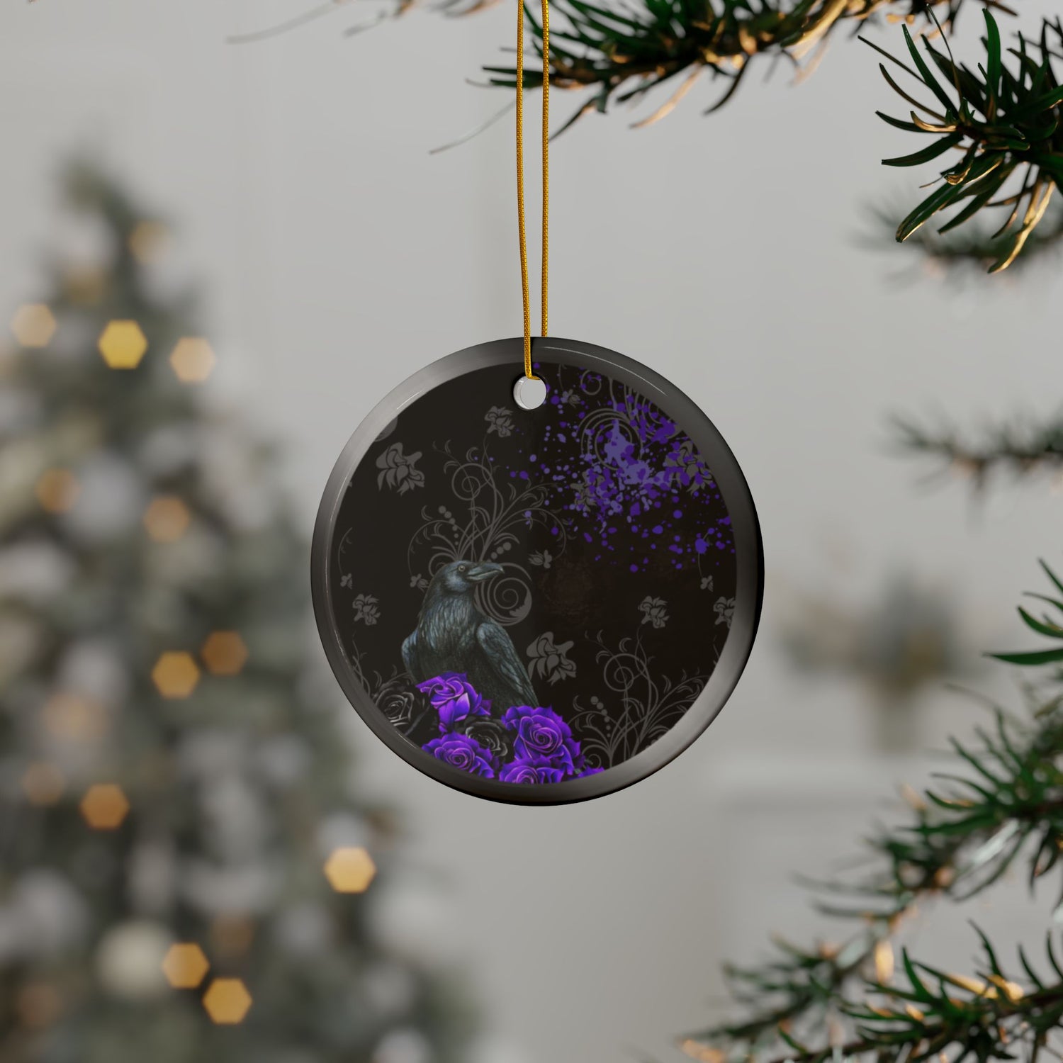 Black Feather / Red Ceramic Ornaments, perfect for a goth aesthetic. Ideal for Halloween through Gothmas tree decor, providing an elegant and chilling vibe. Relevant for those who love dark and sophisticated holiday decorations.
