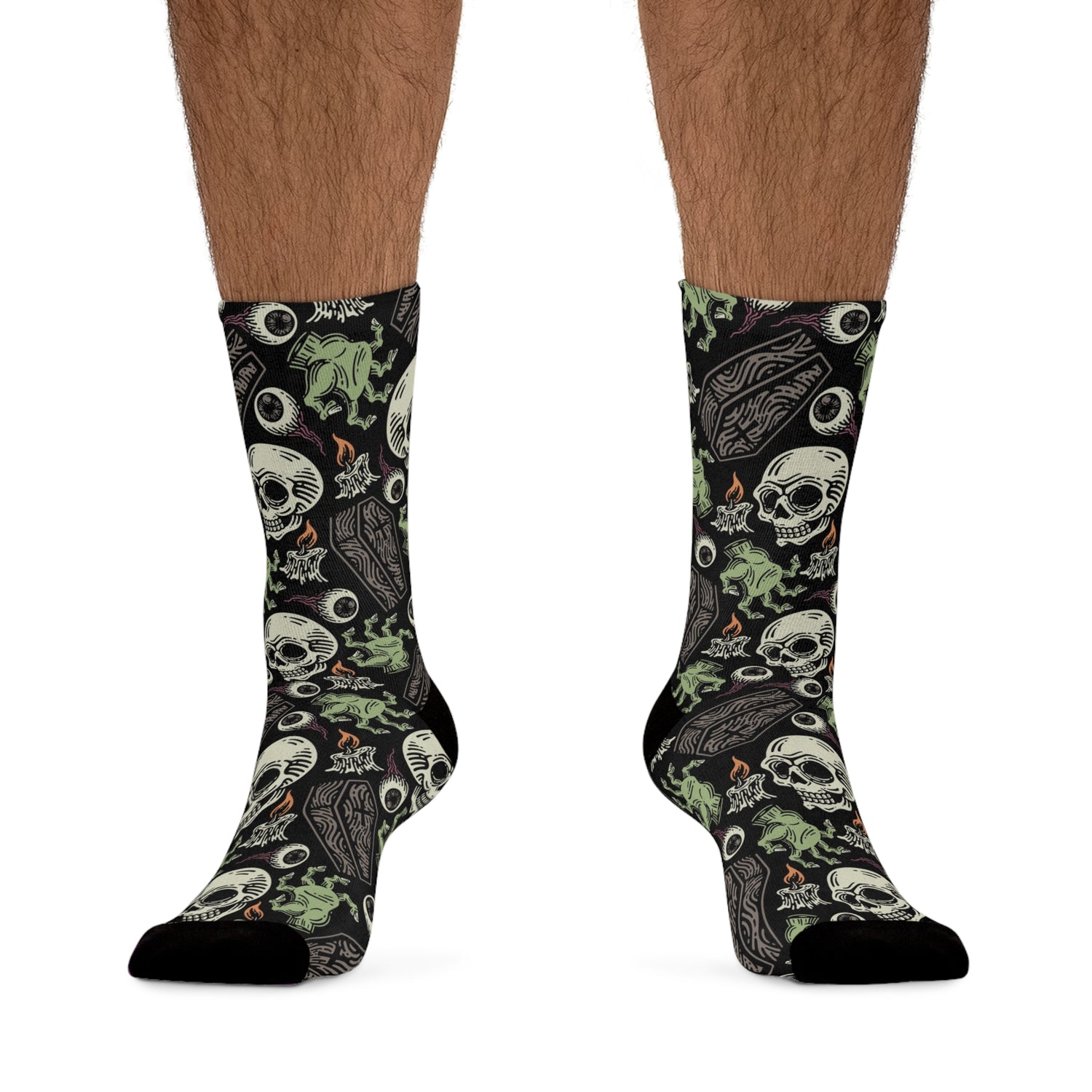 Be the talk of the town with our Creeptihon Socks! Made from recycled materials, these spooky horror-themed socks feature skulls, coffins, and all things creepy. Perfect for Halloween or for those who love a little spook in their style. Sustainable and fun, it's a must-have for any goth or horror fan!