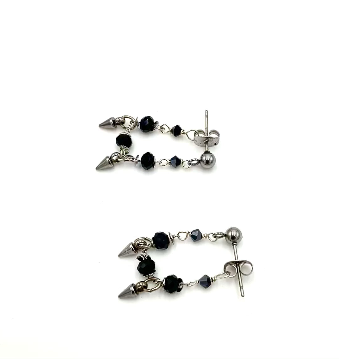 Obsidian Crystal Beads on Hyper-Allergenic Studs with Silver Chain.