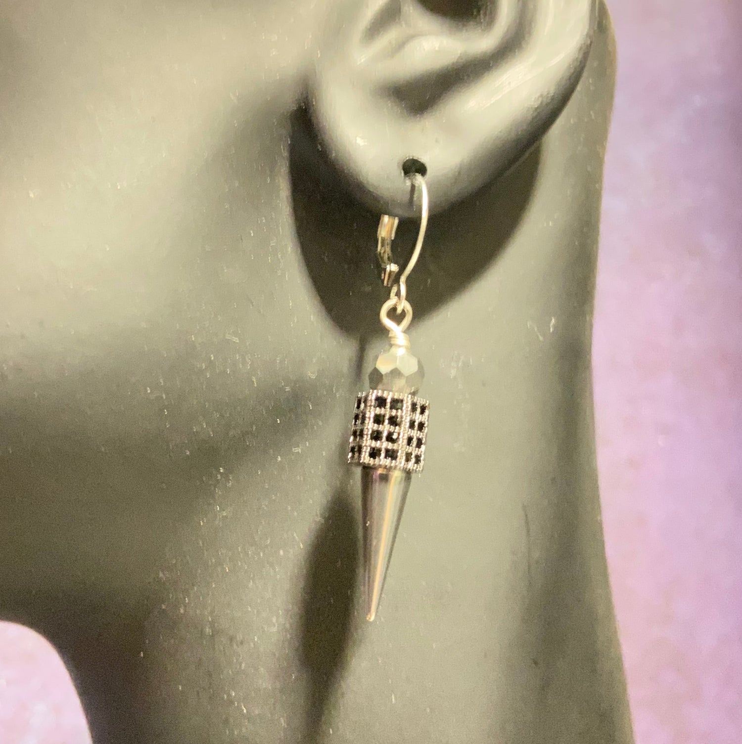 This earring with its stainless steel spike multi-faceted barrel was constructed with care and attention to detail. Hand made to so the beauty of Gothic and Industrial style ing.