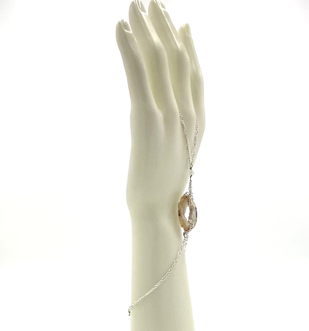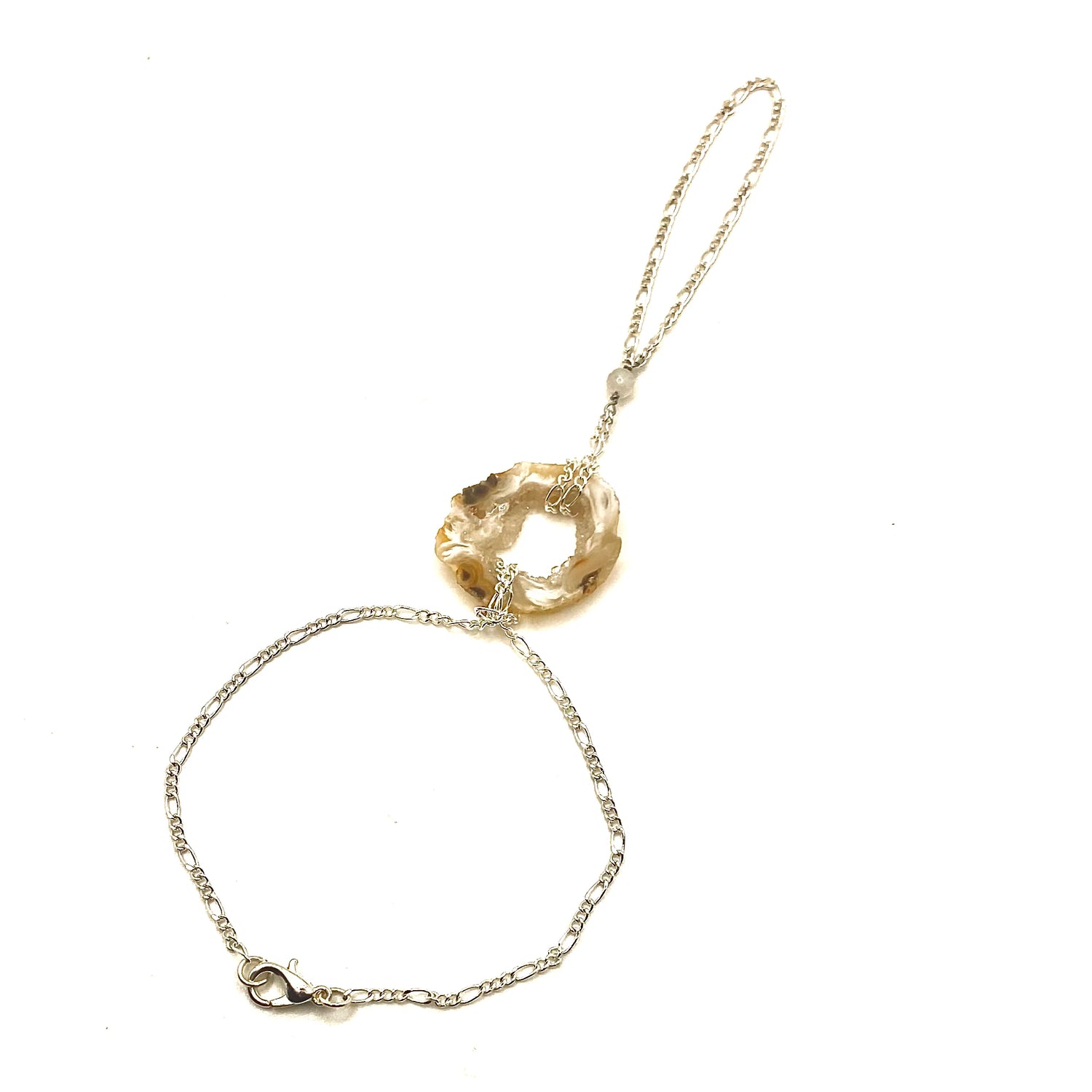 A wonderful piece of BoHo nature. Geo agate and quartz crystal bead on silver chain bracelet.