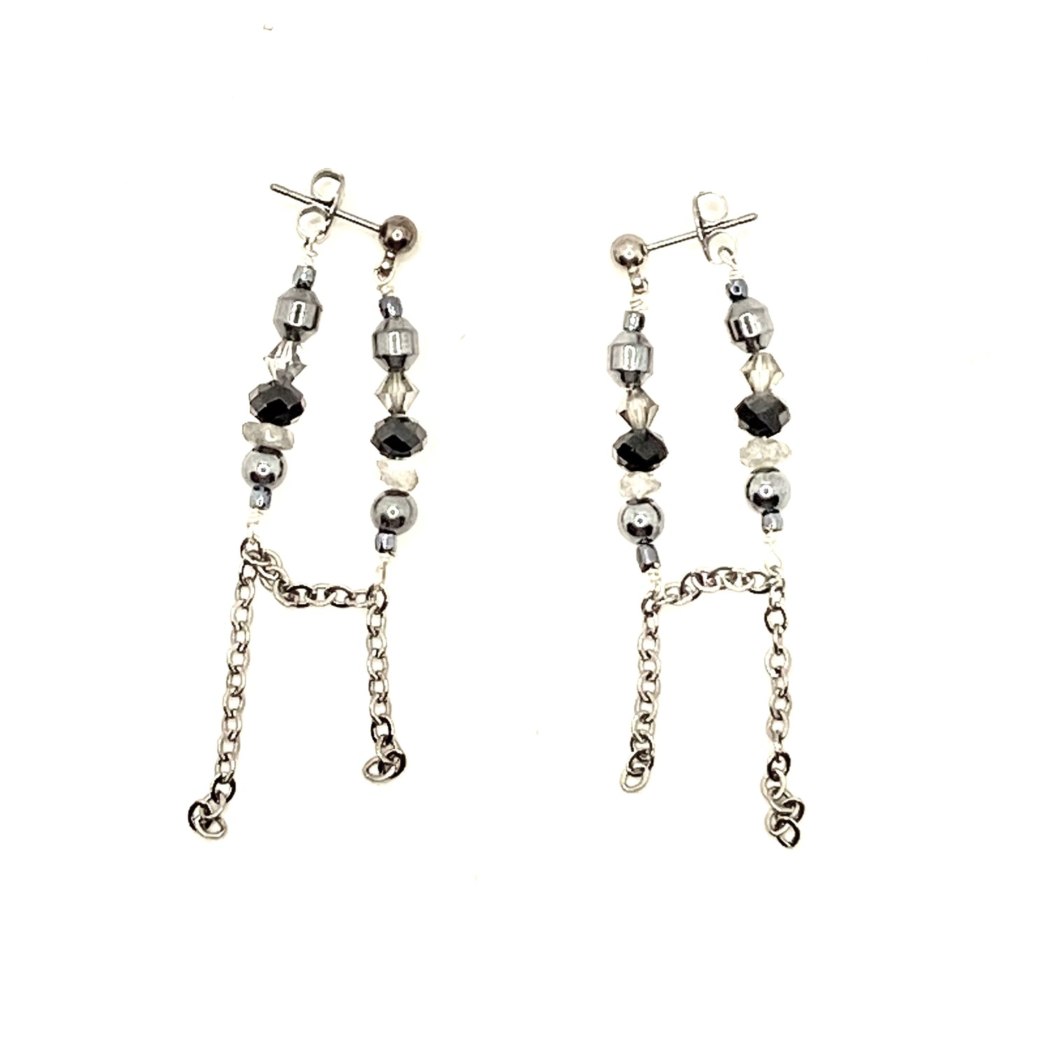 This one of a kind piece was part of a collection of colors beautiful handmade. Gray Labradorite and Grey Crystal Beads on Hyper-Allergenic Studs with Stainless Steel Chain.