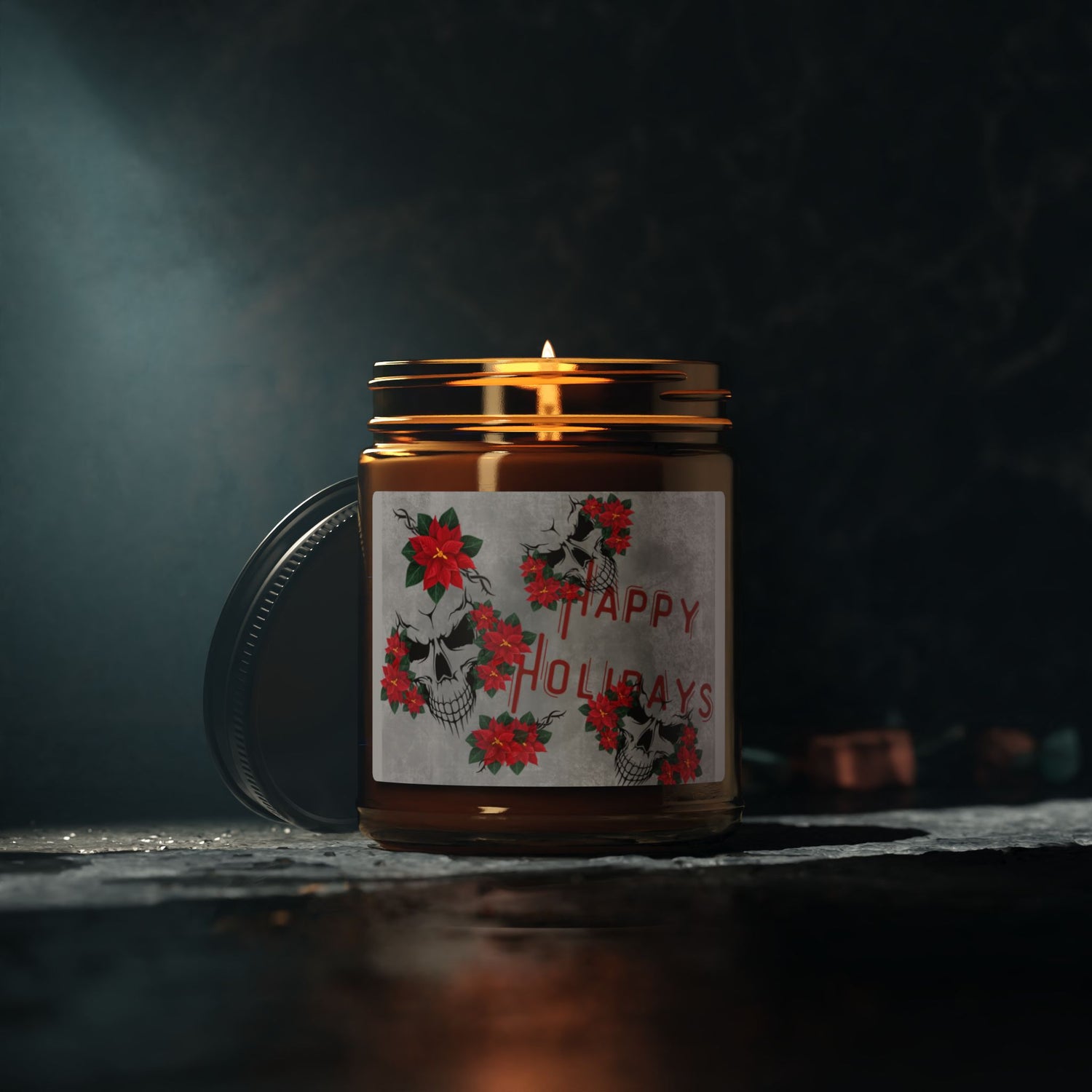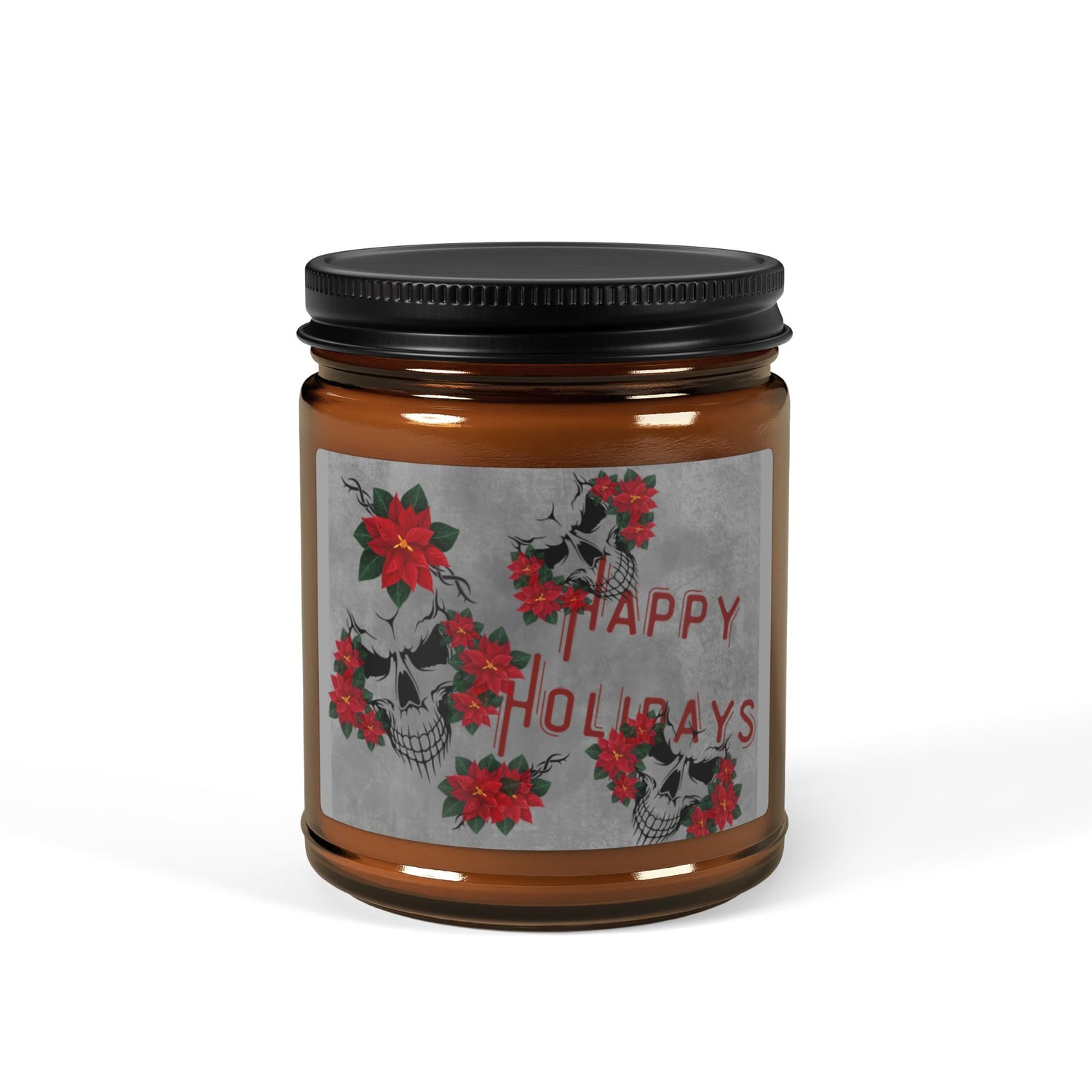 Soy Candle - Happy Holiday / Skulls and Poinsettia Scented Candle