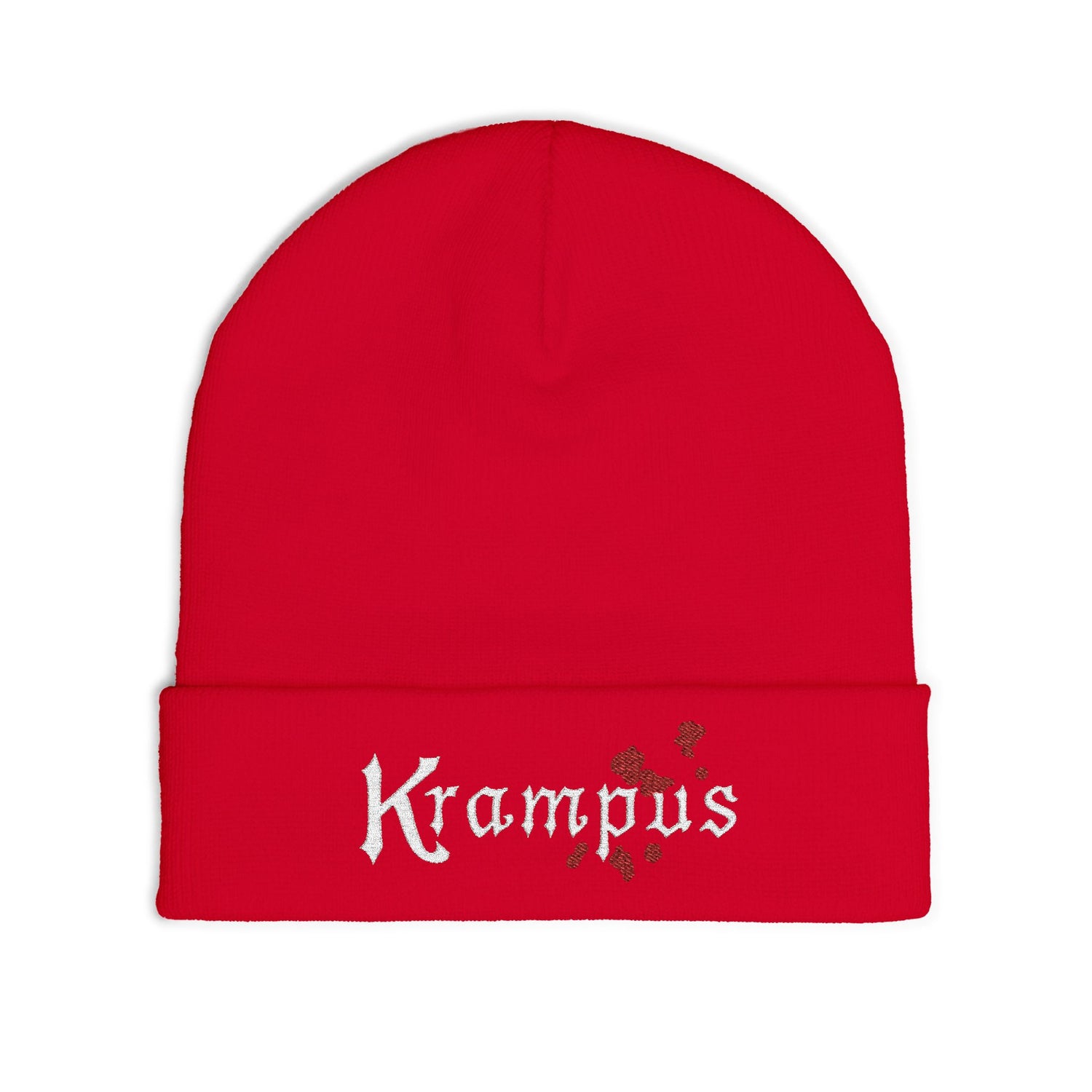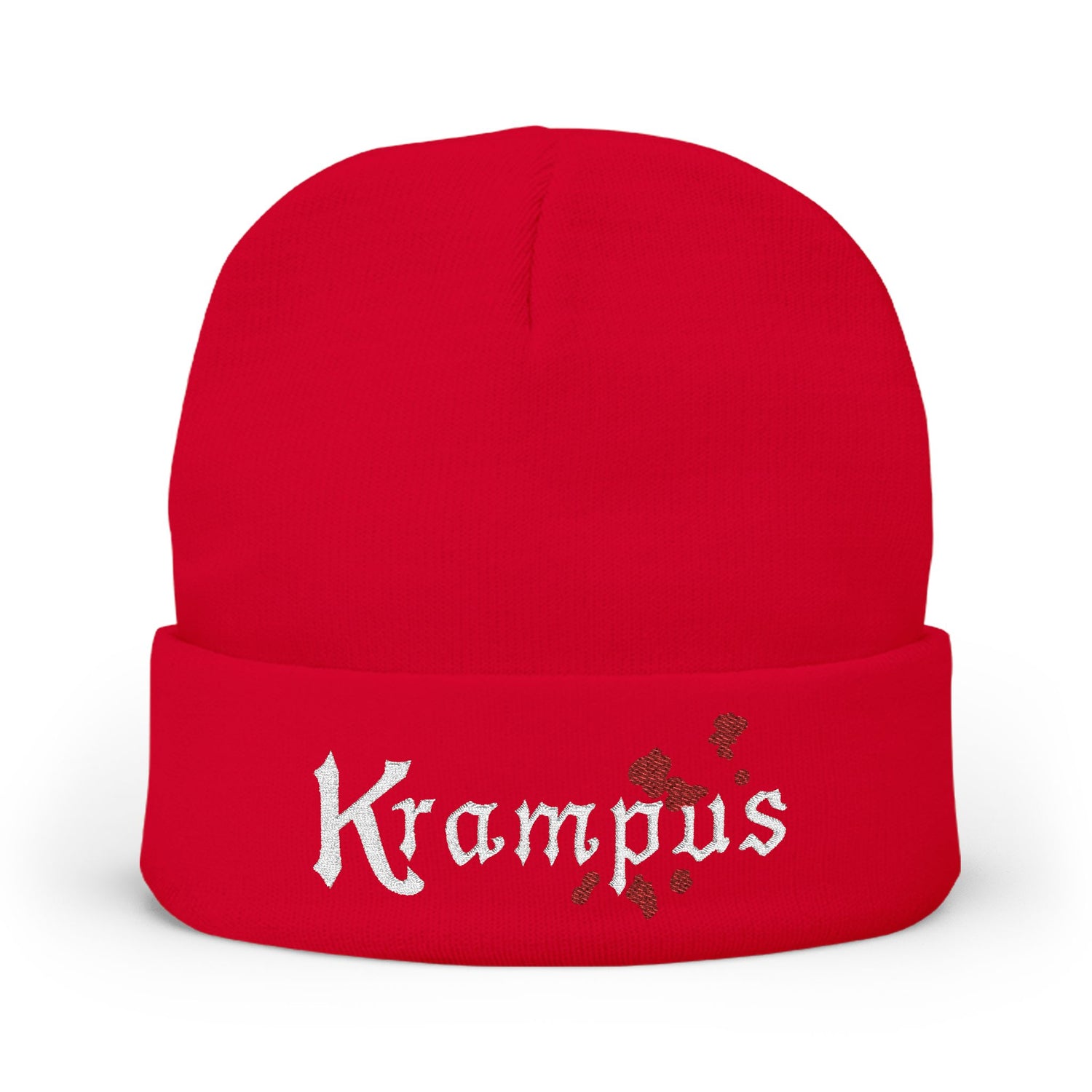 This embroidered beanie featuring Krampus is perfect for those who love Spookymas and want to add a touch of spooky cheer to their winter wardrobe. The unisex design makes it a great gift for anyone who enjoys unique and quirky accessories. Ideal for Halloween, Christmas, and winter holiday celebrations.
