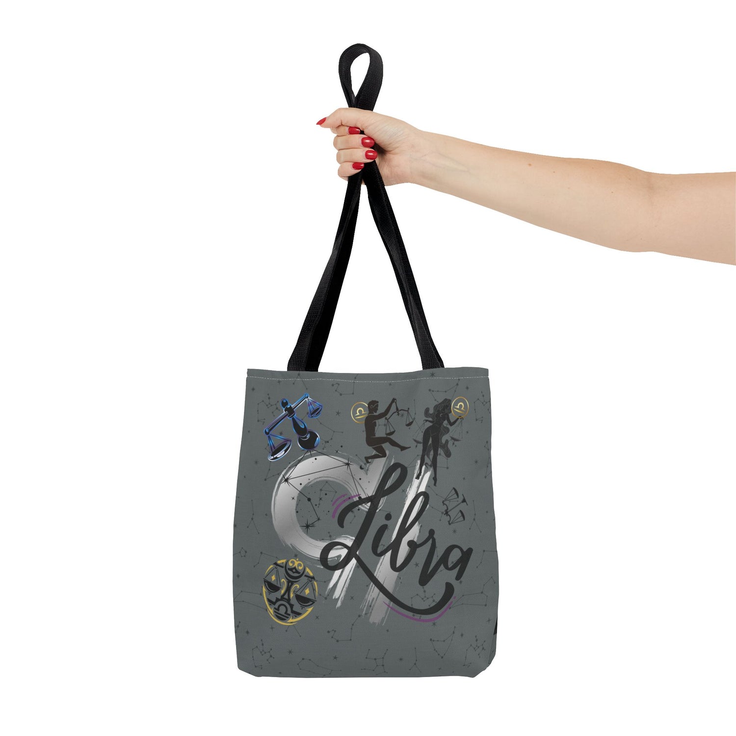 Carry a little cosmic comfort with this Libra Zodiac Tote. Soft, resilient polyester holds its shape while boxed corners give extra room for tarot decks, notebooks, or market finds. This Libra constellation motif speaks to those who are Astrology lovers. Display your sign proudly with this Mystic Astrology Collection, perfect for showing off your zodiac sign. Bonus, you can choose a handle color that fits you best.