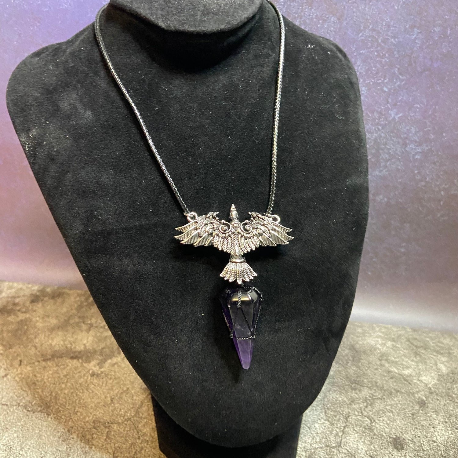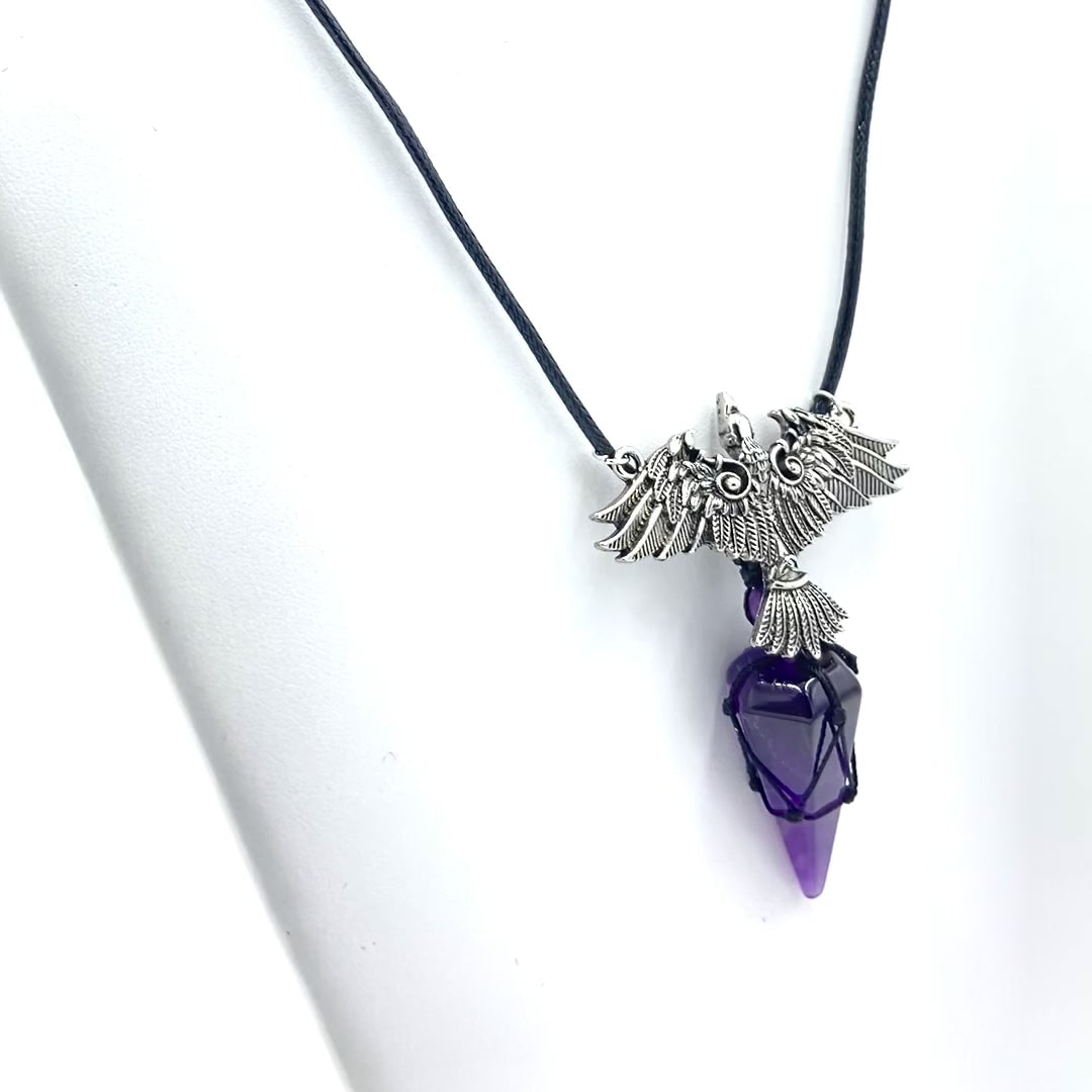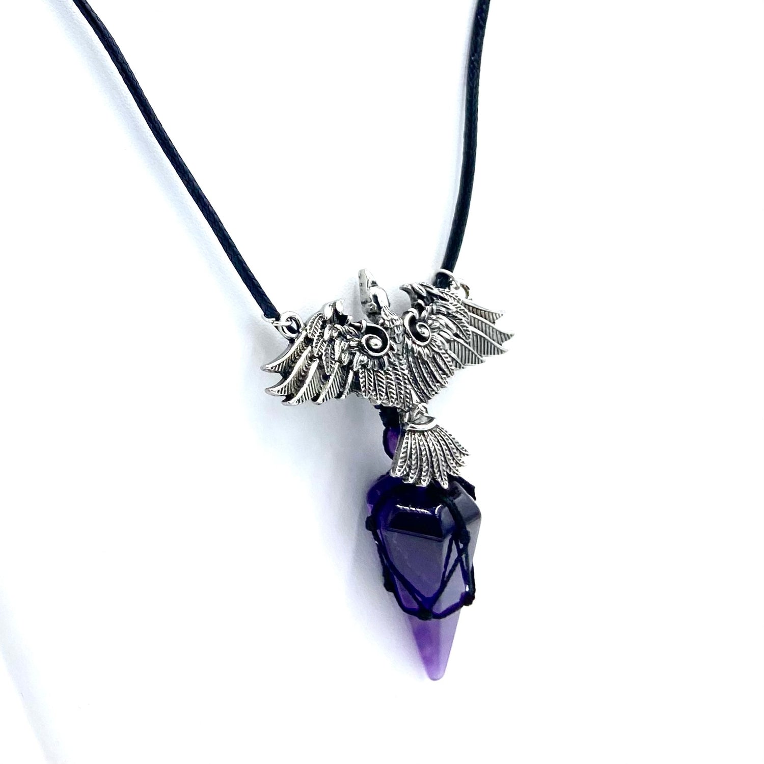 Raven with Amethyst Spike | Adjustable Cord Necklace