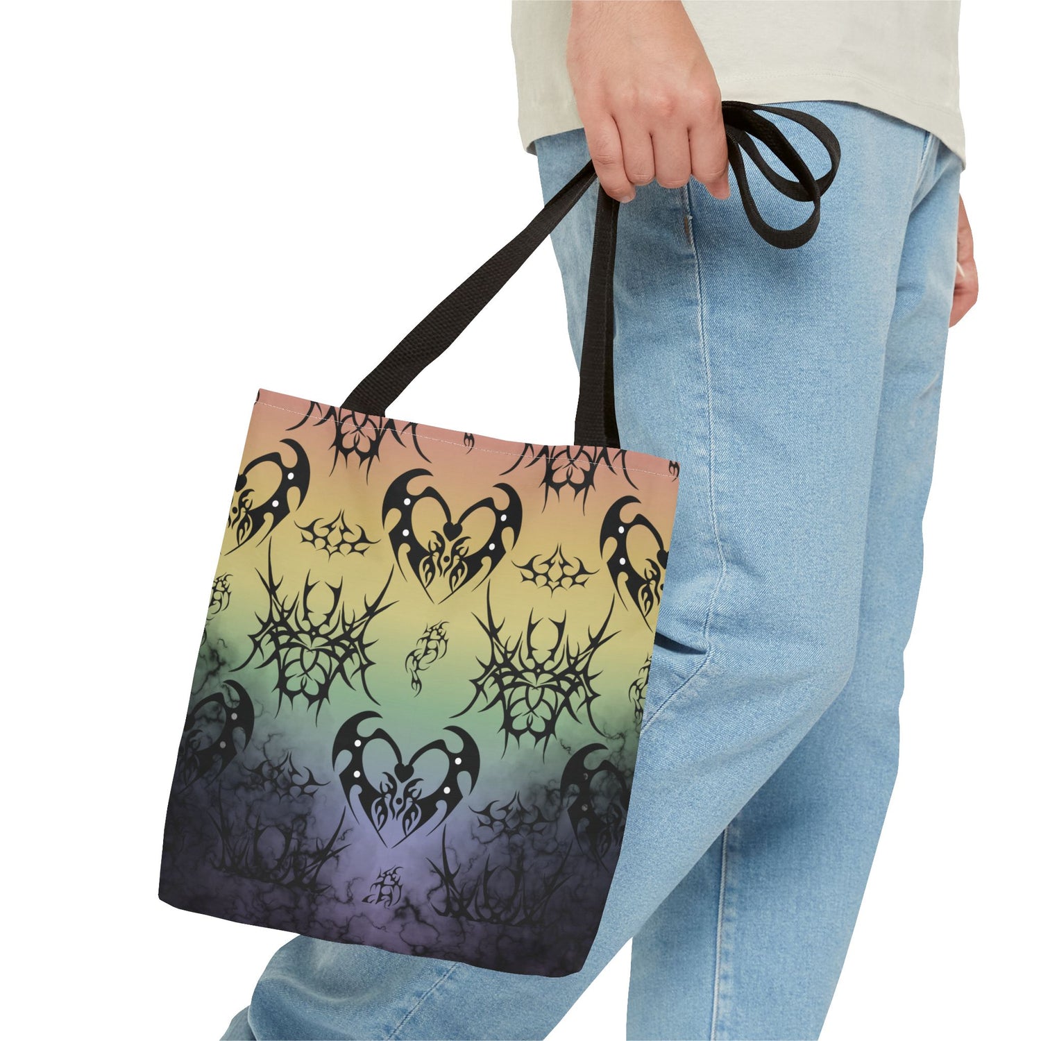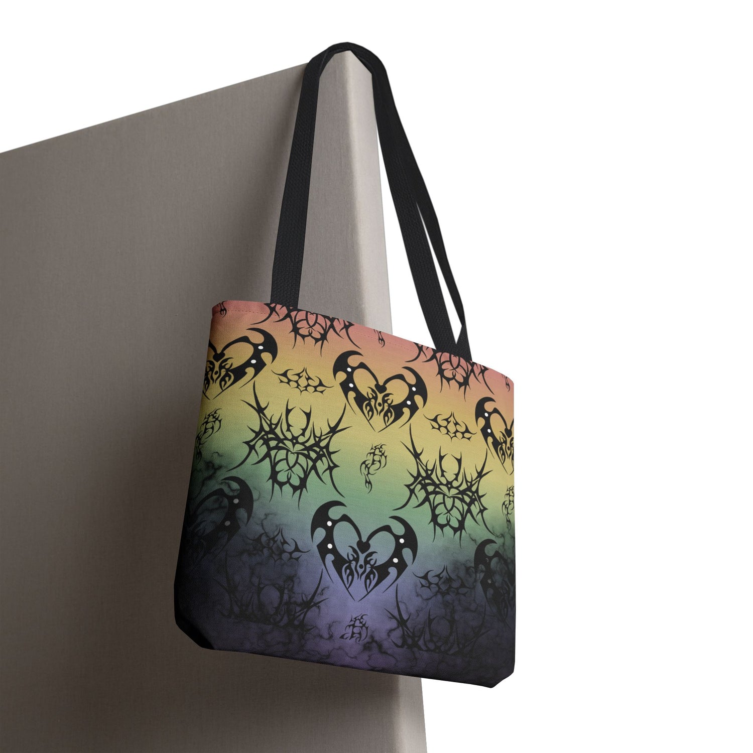 This Gothic Pride Tote Bag is a perfect blend of style and functionality. The strong polyester material ensures durability, making it ideal for daily use—whether you're heading to the market, the beach, or just out for a night of shopping. Perfect for eco-conscious individuals, this tote is both fashionable and practical. Great for gifting during holidays, birthdays, or any special occasion.