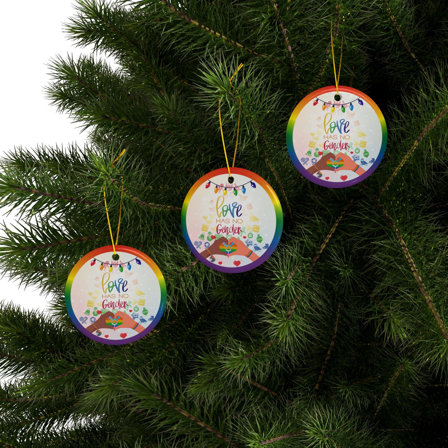 Heirloom Ceramic Ornaments with a message of pride spirit and excepting love. Perfect for LGBTQ individuals and allies, celebrating love without gender restrictions. Ideal for decorating during LGBTQ holiday events, or your own tree.