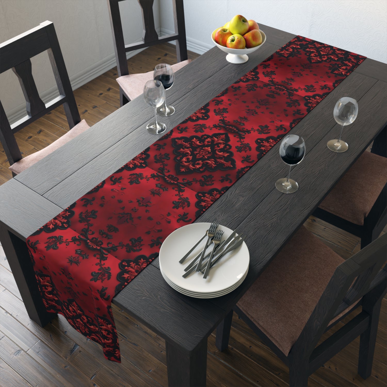 Add a touch of dark, gothic flair to your home decor with the Scarlet Noir Table Runner. Perfect for those who love a darker aesthetic, this table runner will bring a moody atmosphere to any dining room or kitchen. Ideal for Halloween parties, Gothic weddings, or everyday use by those who appreciate a unique look.
