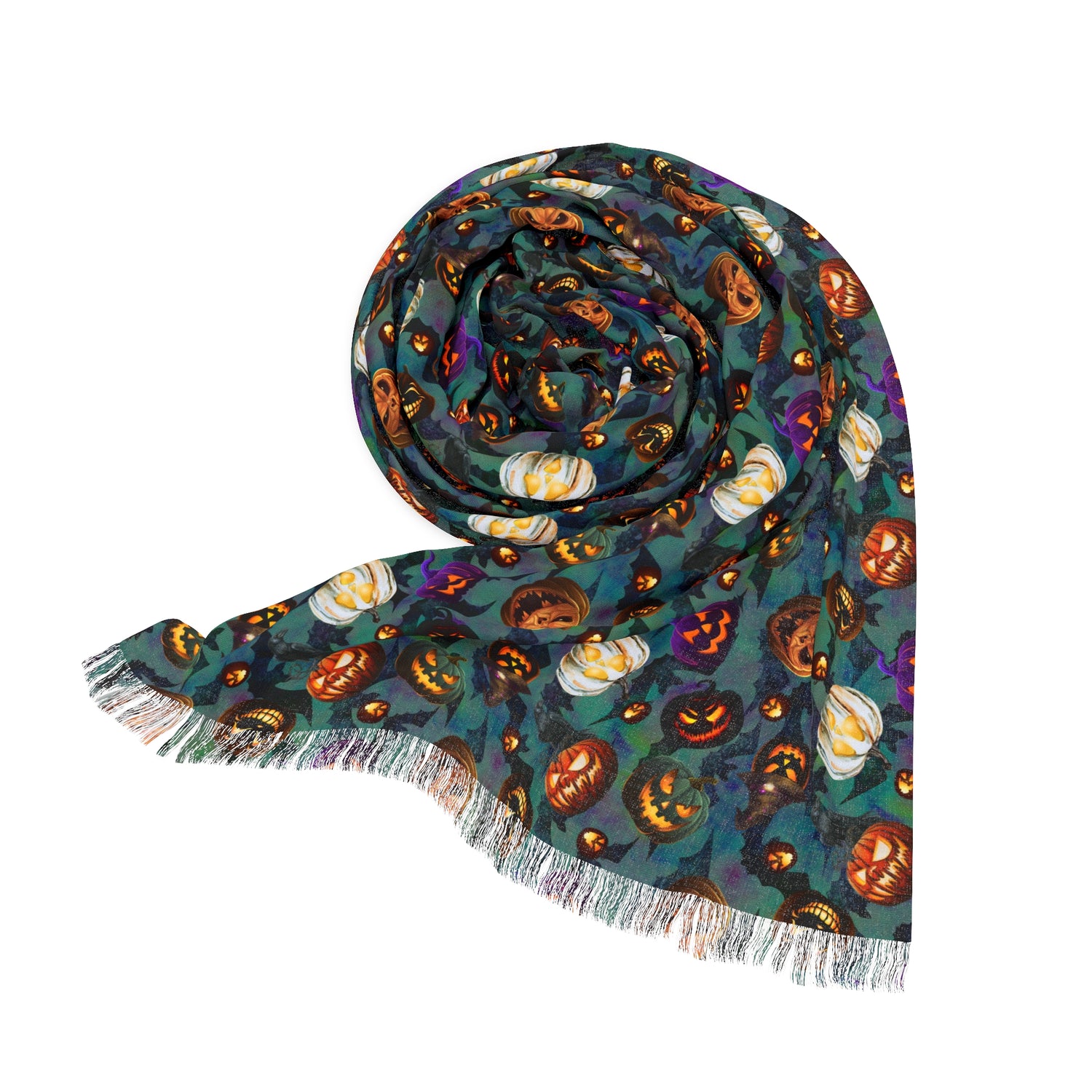 Scary Jacks Light Scarf perfect for the Halloween season, featuring Jack-o’-lantern and Bats design. Soft and cozy material makes it a great accessory for nightmare holidays. Makes an amazing gift for those who love all Hallow’s Eve and want to add a touch of nightmare to the holidays.