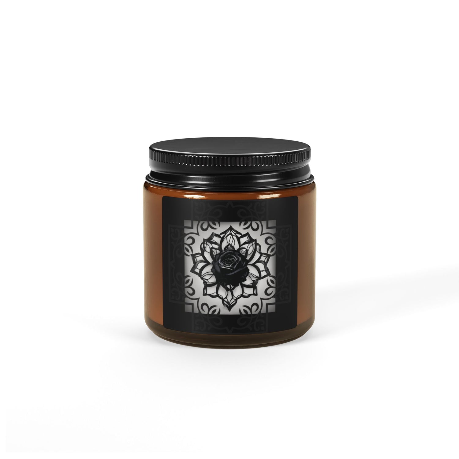 Gothic and elegant scented soy candle featuring a sinister black rose design, perfect for dark home decor. A must-have for those who appreciate unique scents and dark stylish decor. Great gift for those who love gothic aesthetics and distinctive home fragrance. Relevant for Halloween, Gothic celebrations, and gift-giving occasions.