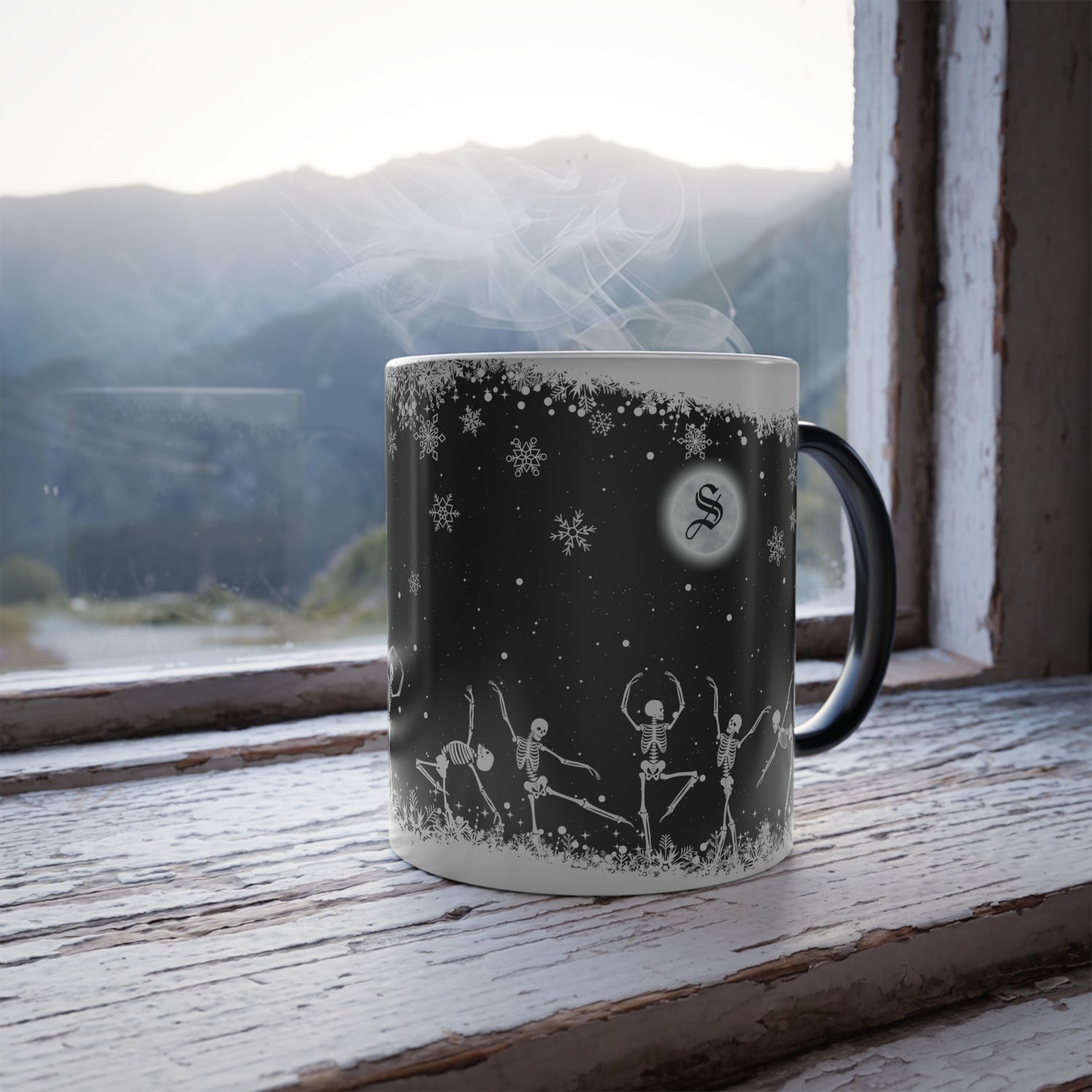 This mug hides a secret, it changes color revealing an amazing original design as it warms. This Skeleton Ballet inspired mug is a great collectors piece or popular gift for friends and loved ones, a piece that keeps on giving. With a heat-reactive surface revealing a original hand made design. The ceramic cup will go back to its original state when it cools. Discover the Spooky-mas Collections not just for the holidays, mix & match your favorites or Buy the whole wondrous collection to enjoy!