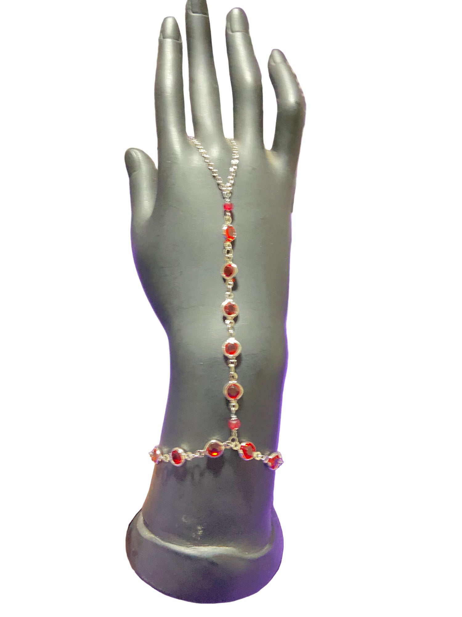 Jeweled Crystals Hand Piece | Hand Made Wearable Art | Bracelet to Ring Design