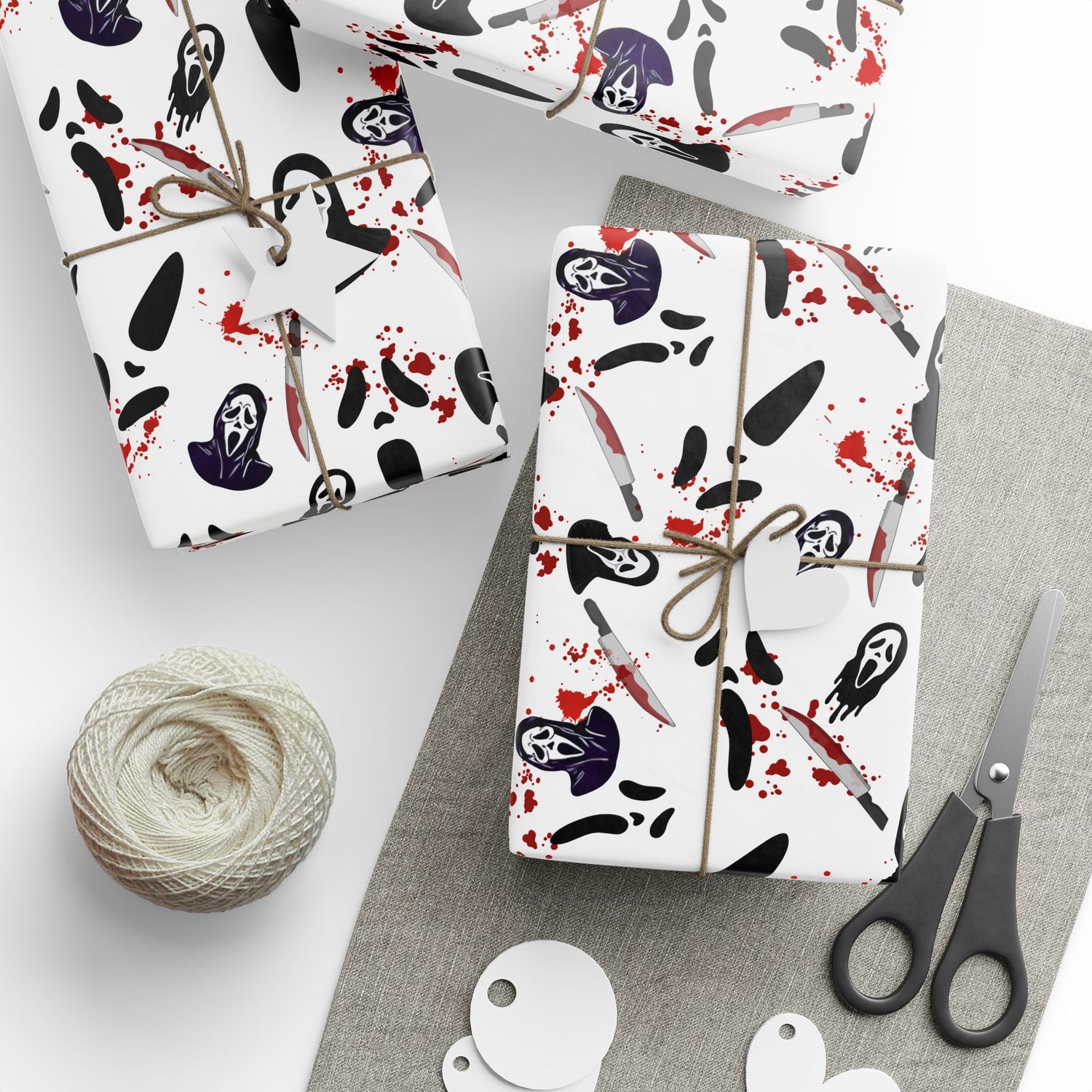Make your next special occasion a Scream with this Ghost Face themed gift wrap papers perfect for adding a spooky and nightmare touch to your Christmas presents. Ideal for those who enjoy a darker holiday aesthetic and want to stand out with unique gift wrapping.